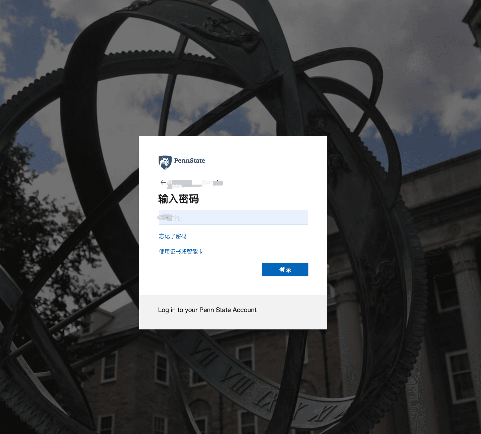 2️⃣接下来需要登陆学术机构验证学生身份,学校选择“Pennsylvania State University”,其他的随便填,填好之后需要进入学校官网界面进行验证这里先跳过